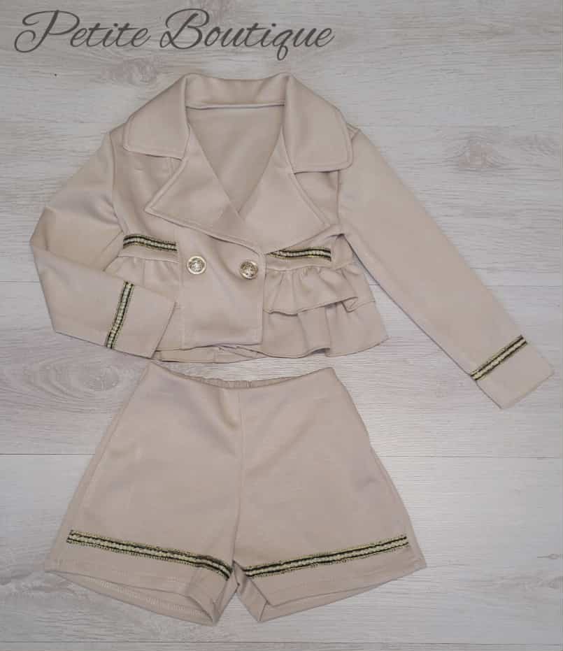 Beige 2pc jacket & short set