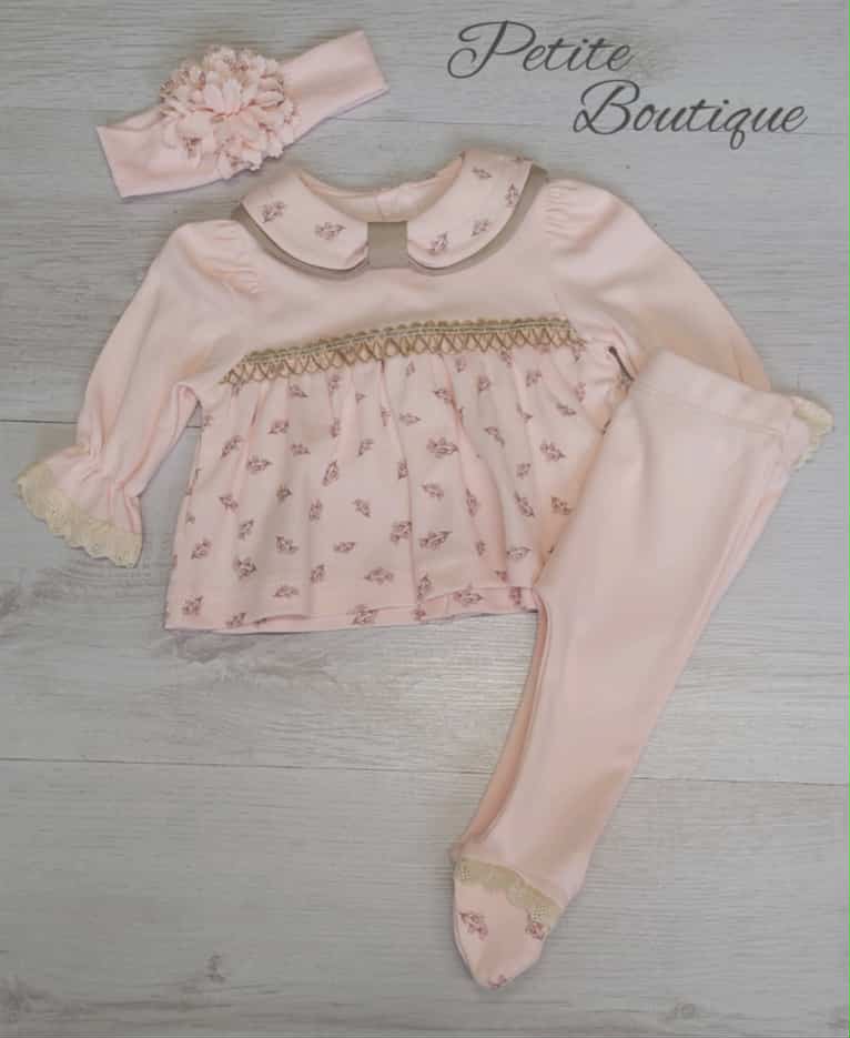Pink/beige 3pc set top, bottoms & headband