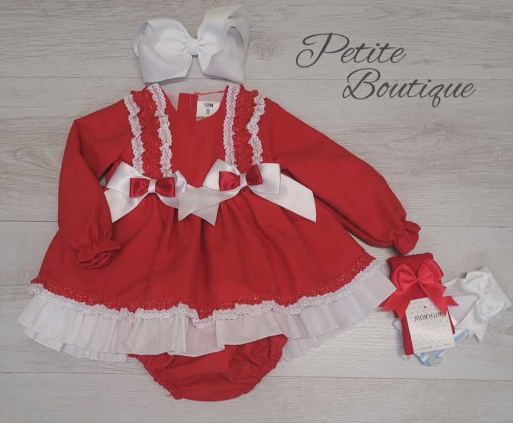 Spanish red/white double bow dress & matching pants