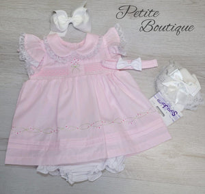 White/pink dress with matching pants & headband