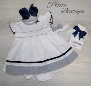 White/navy dress with matching pants & headband