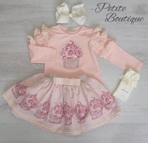Peach/pink cupcake top & skirt set