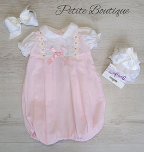 Pink/white bow romper