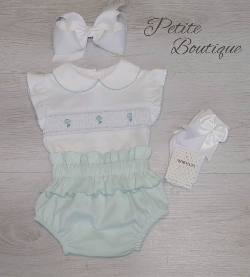 Spanish pastel green smock top & jam pant set