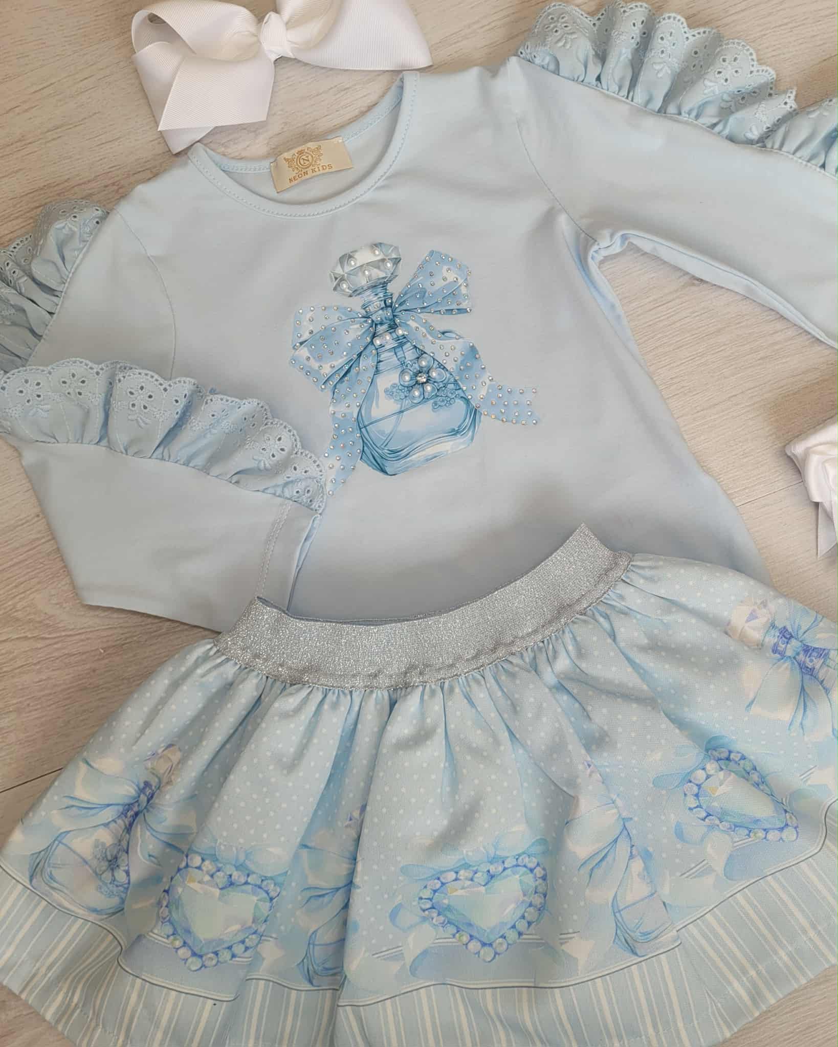 Ruffle sleeve top & skirt set, elasticated waist, normal fitting, accessories not included
